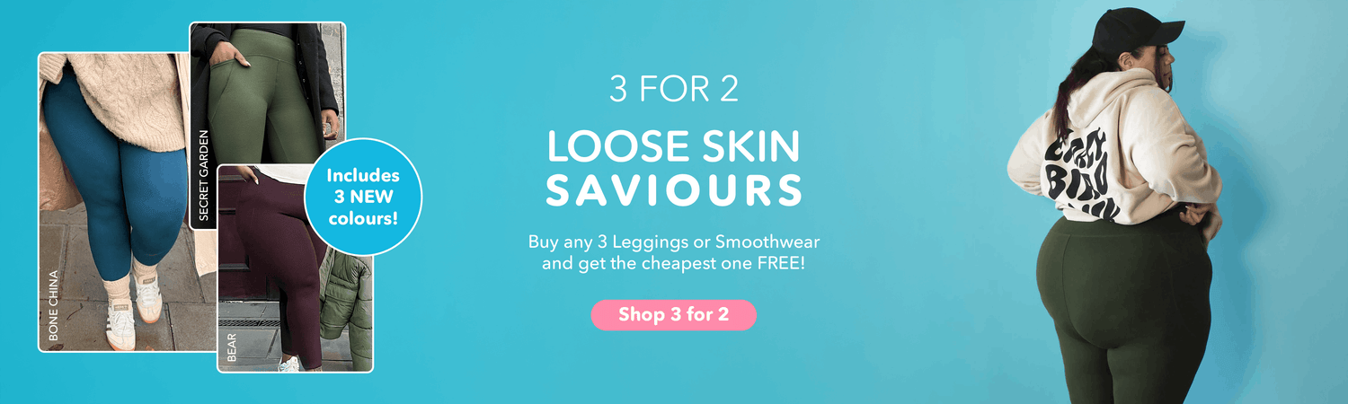 Need supportive leggings for loose skin or weight loss clothes that actually stay put? Grab a supportive hug with our 3 for 2 offer on supportive leggings & underwear. Mix and match our best-selling Black Squat-Proof Leggings with our brand new shades: earthy Bear, cool Bone China, and deep Secret Garden.