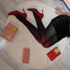 From the front, you have bold red plaid stockings, turn around and playful bows bring a hit of festive personality while staying classy, wearable and perfect for every celebration. Whether you are heading to a Christmas party, sipping mulled wine with friends or just bringing a little extra sexy fun to your day, these tights are perfect for the season. Gift Wrapped will show a peekaboo surprise of festive bows at the top of your thighs every time you bend to get a present from under the tree or pour the eggnog. Made with the same cosy softness and stretch as our bestselling Black 80 denier tights, this style hugs your curves comfortably and stays in place all day. The high waistband sits smoothly without rolling or digging in, and the breathable cotton gusset keeps you feeling fresh from morning mischief to midnight dancing. Warm, fun and fabulously festive, these tights are made for the season’s best moments