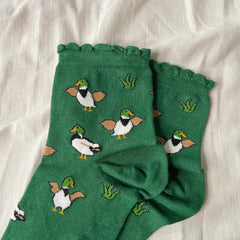 You’ve got a whole gang of adorable ducks waddling across a rich dark green background. They are perfect for animal lovers, anyone who fancies a proper festive laugh, or just the person who deserves the comfiest toes at the Christmas table.