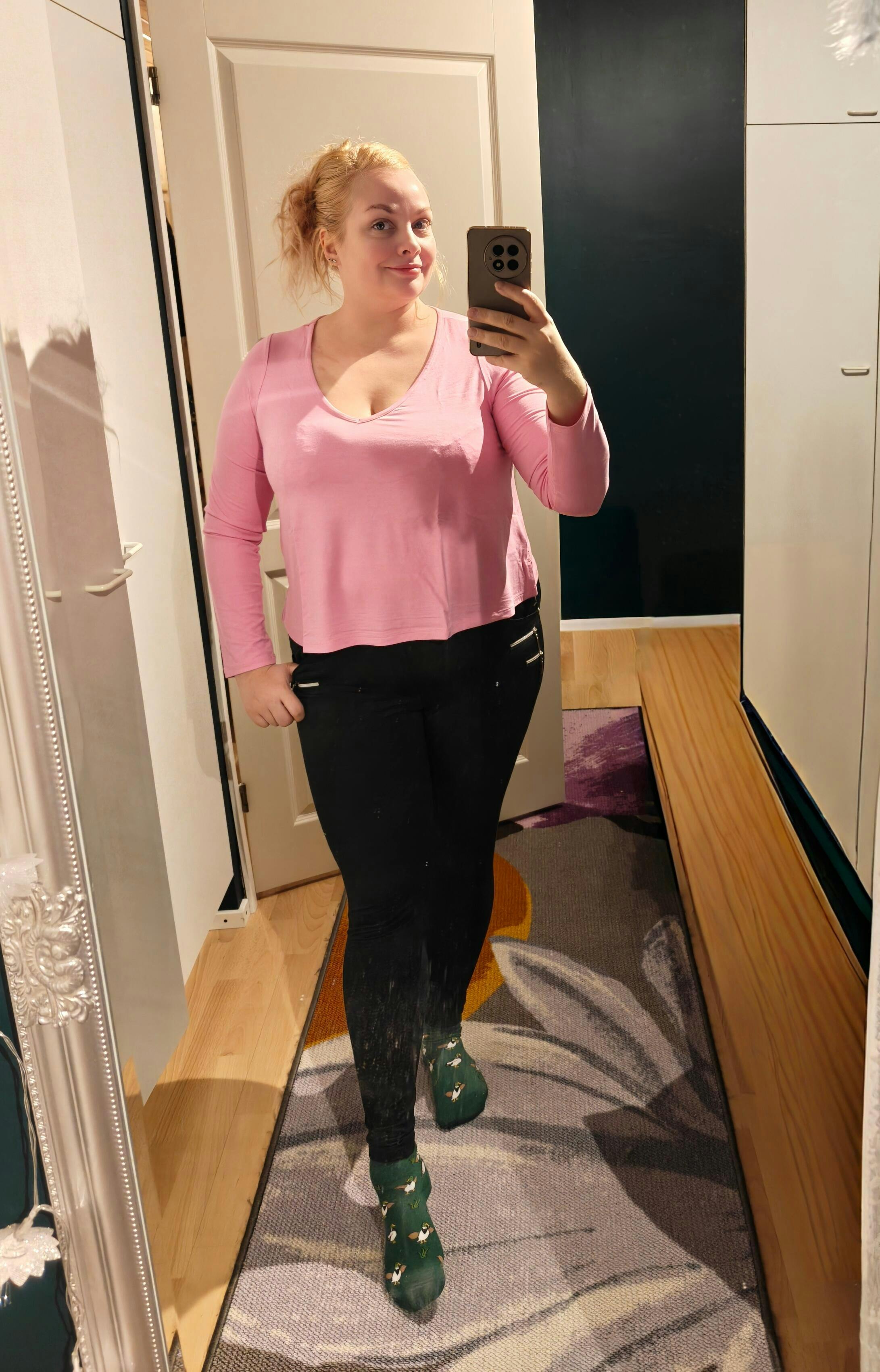 Instead, we have different, easy-to-use size guides for our tights and our clothing, all based on real body measurements. Just follow the size guide here on the product page to find your perfect fit!