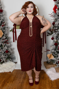 Lurex Halter Dress - Bordeaux
