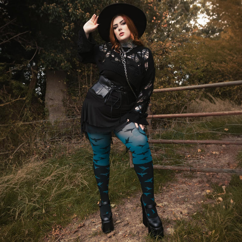 The Birds Tights are the perfect dramatic accessory for your inner witch. These aren't just tights; they're a piece of gothic storytelling for your legs.