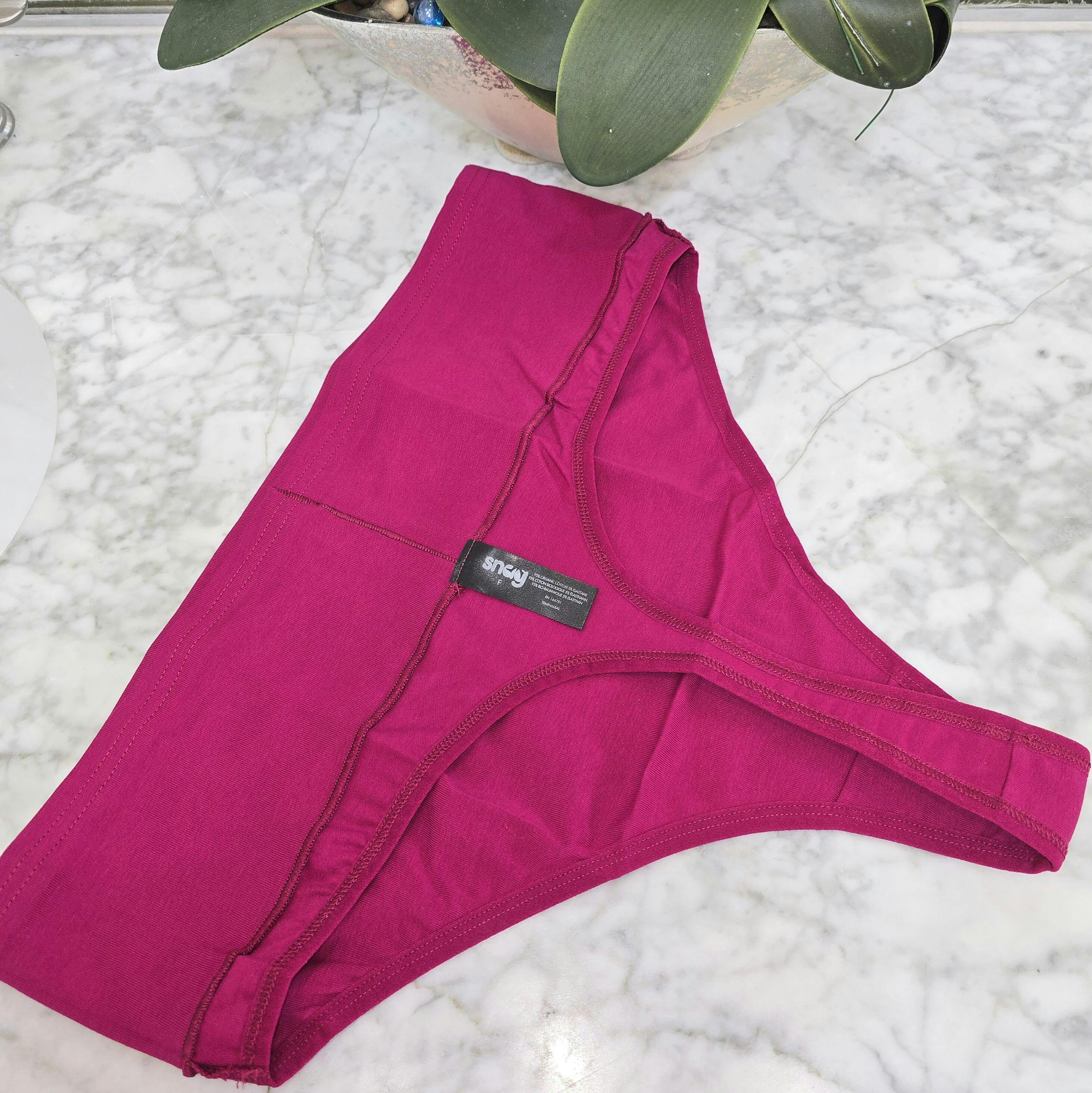 Show off your bum with a Snag thong in Raspberry Pie pink. Ultimate cheekiness with amazing comfort and security, these thongs really are designed to fit every body. Full coverage in the front with a classic thong back, this thong won't roll down, dig in or sag and are comfy enough to wear all day, every day.