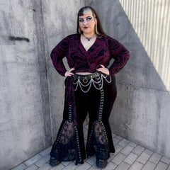 We put our bestselling wrap top in the Kraken's Embrace print and honestly, we're obsessed. Bold, flattering and dripping in alternative energy, the custom tentacle design coils across a black base in deep Cherry. It draws the eye without ever shouting.